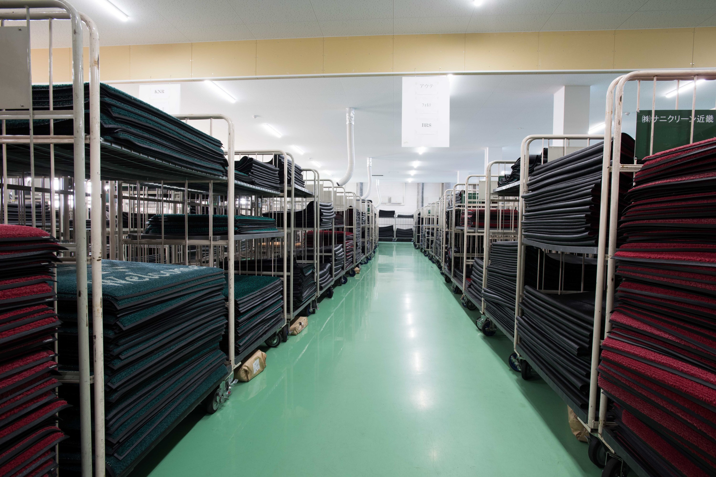 京都工場の役割は、使用済みレンタルマット・レンタルモップを、再びお客様のもとへお届けできるよう、洗濯・加工すること。そして同時に、環境への負荷を軽減すること。